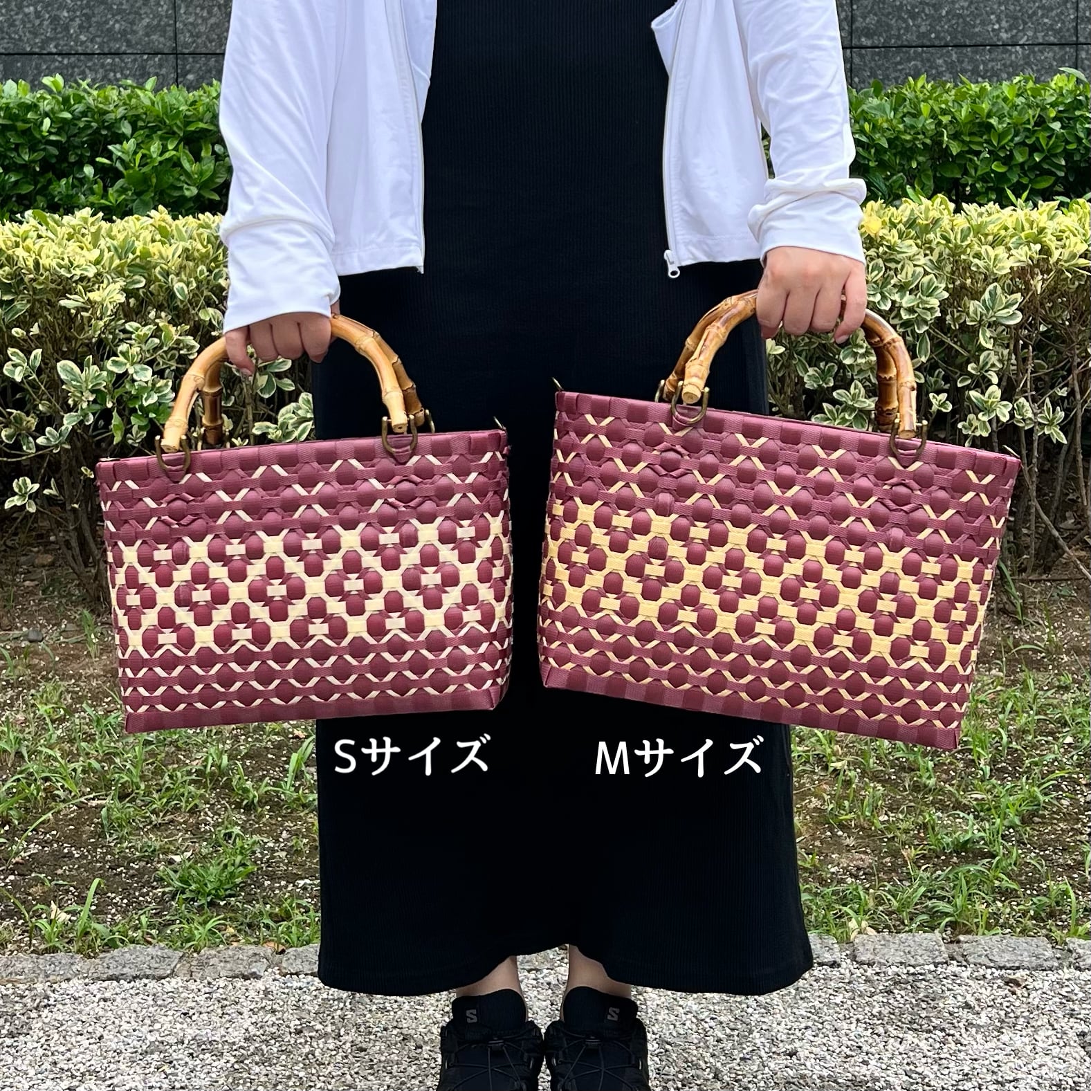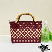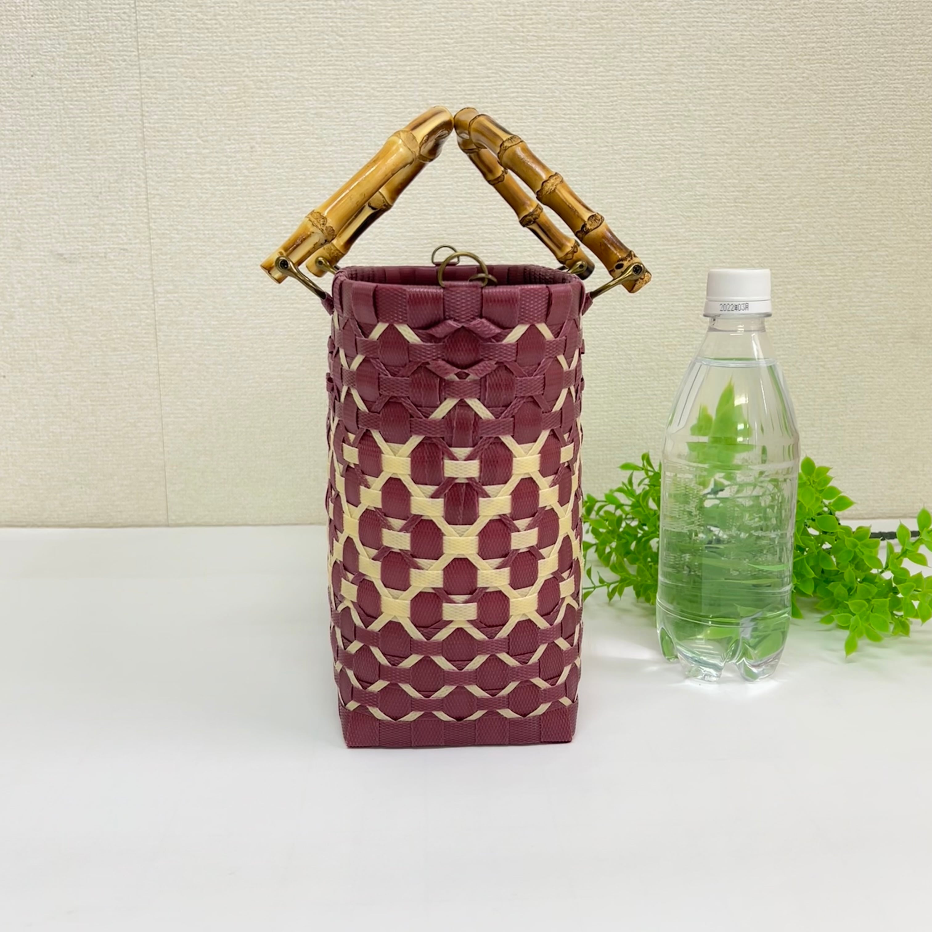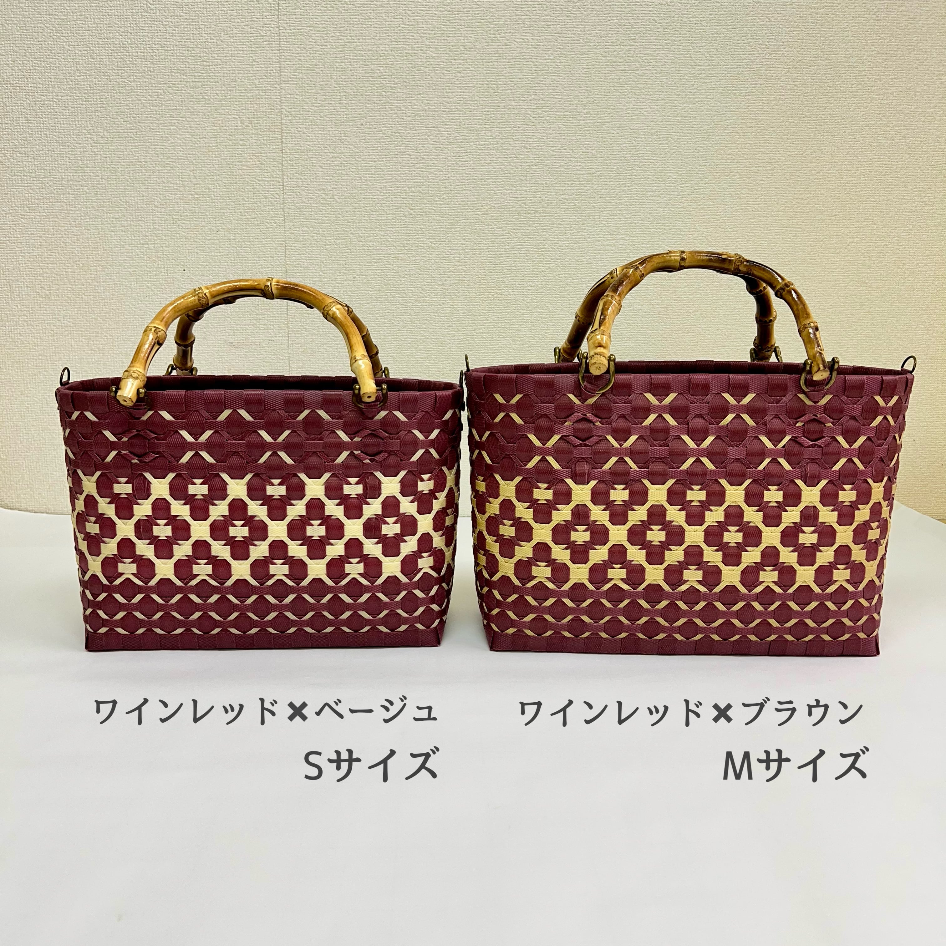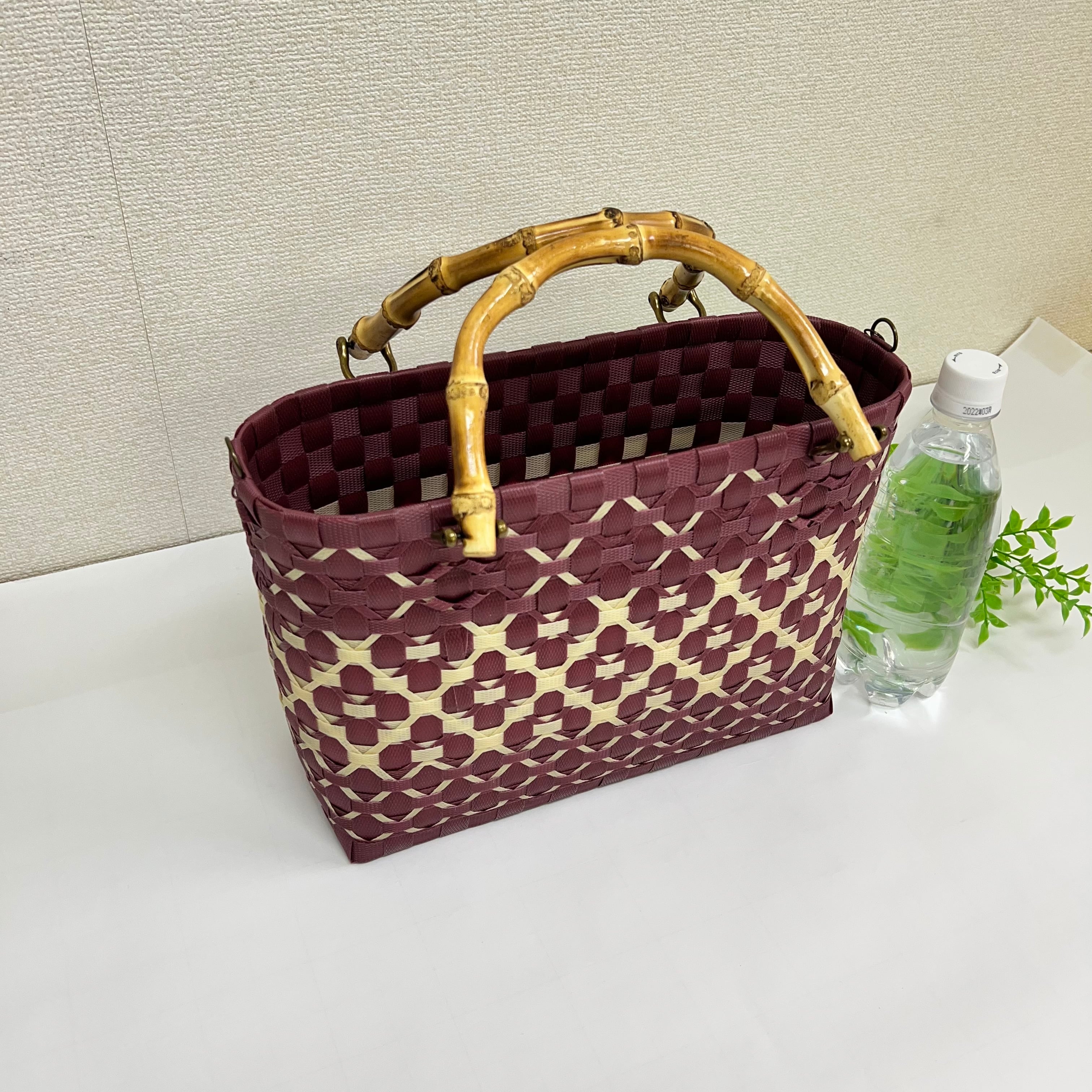 【受注製作】プラカゴ Sサイズ/B5 S-3321 ワインレッド*ベージュ 2way バンブーハンドル プラカゴバッグ 雨の日バッグ