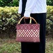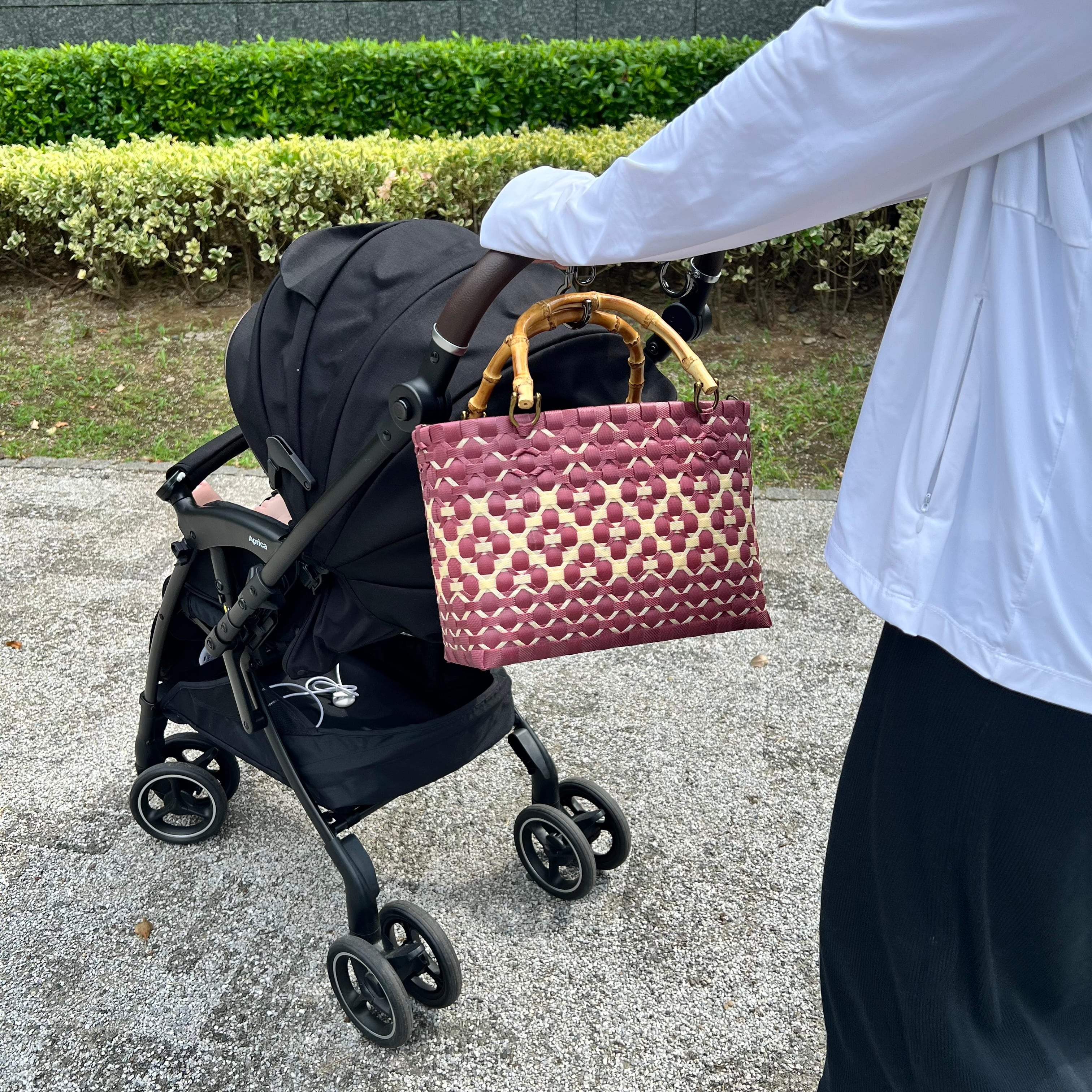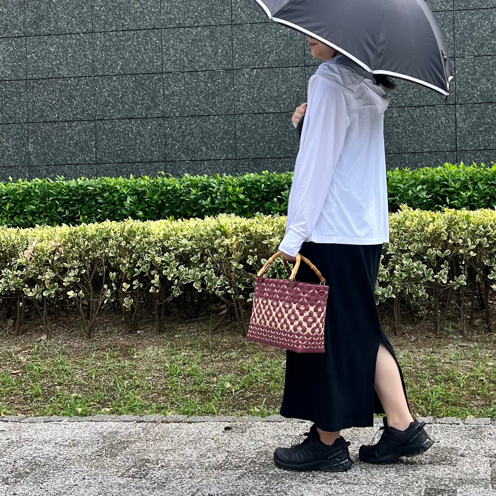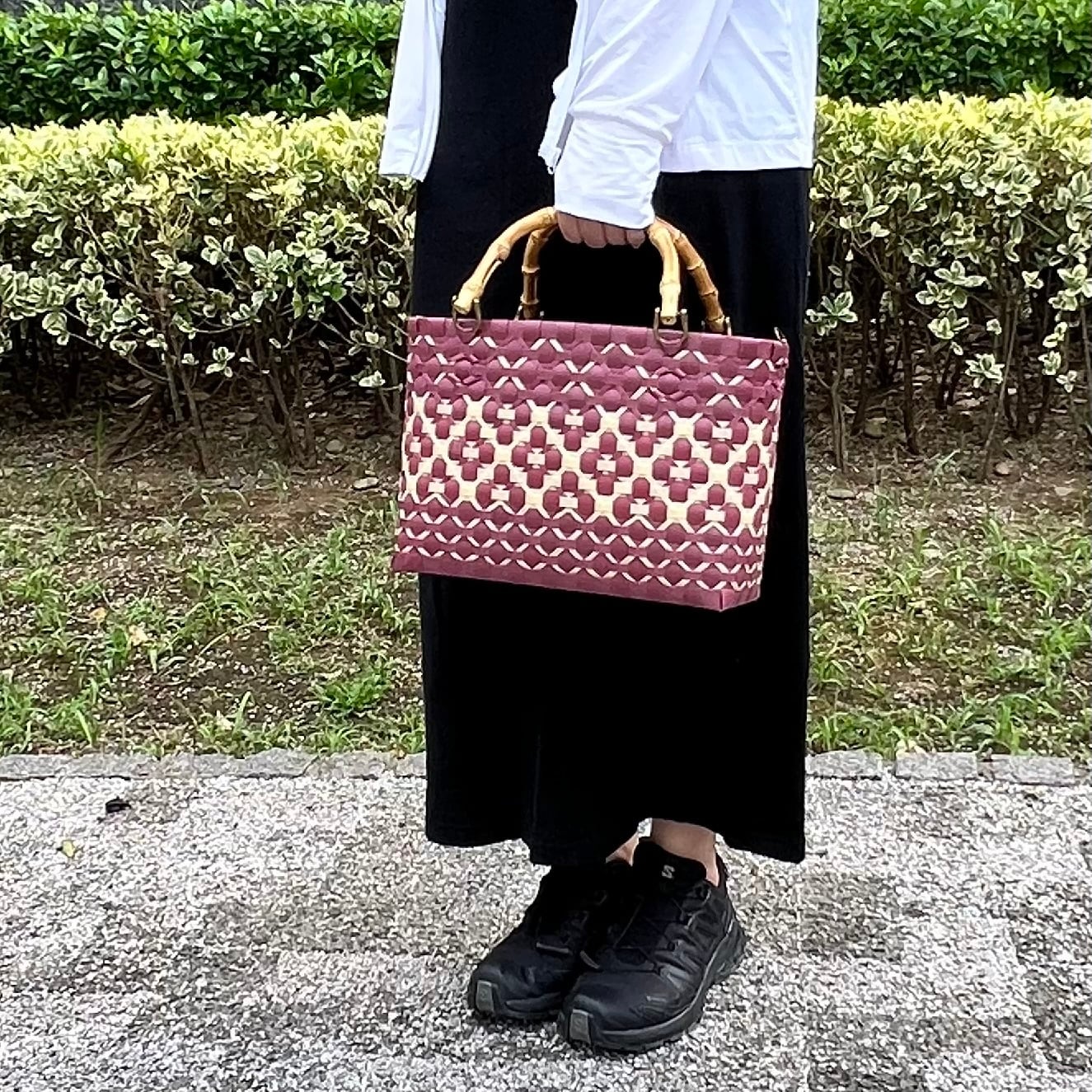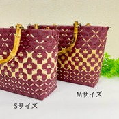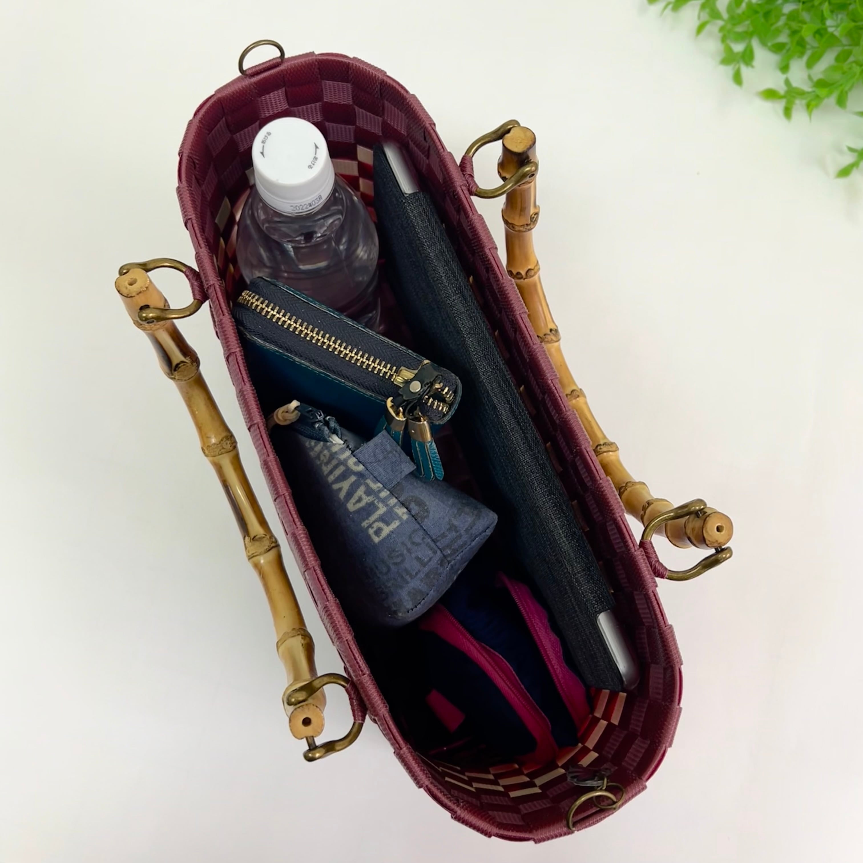 【受注製作】プラカゴ Sサイズ/B5 S-3321 ワインレッド*ベージュ 2way バンブーハンドル プラカゴバッグ 雨の日バッグ
