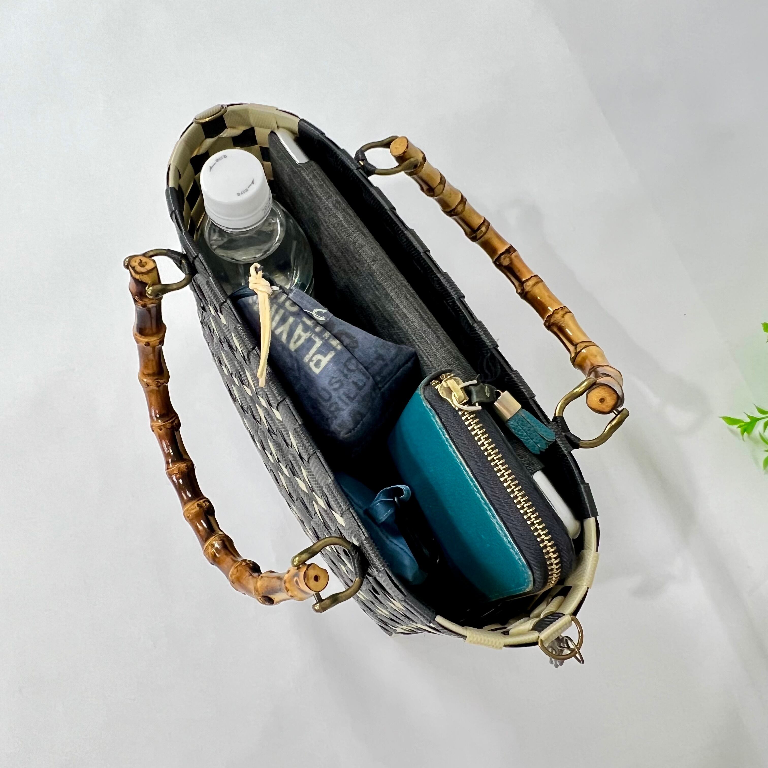 プラカゴ SSトールサイズ SST-2020 黒*ベージュ 2way かごバッグ 雨の日バッグ 浴衣にも