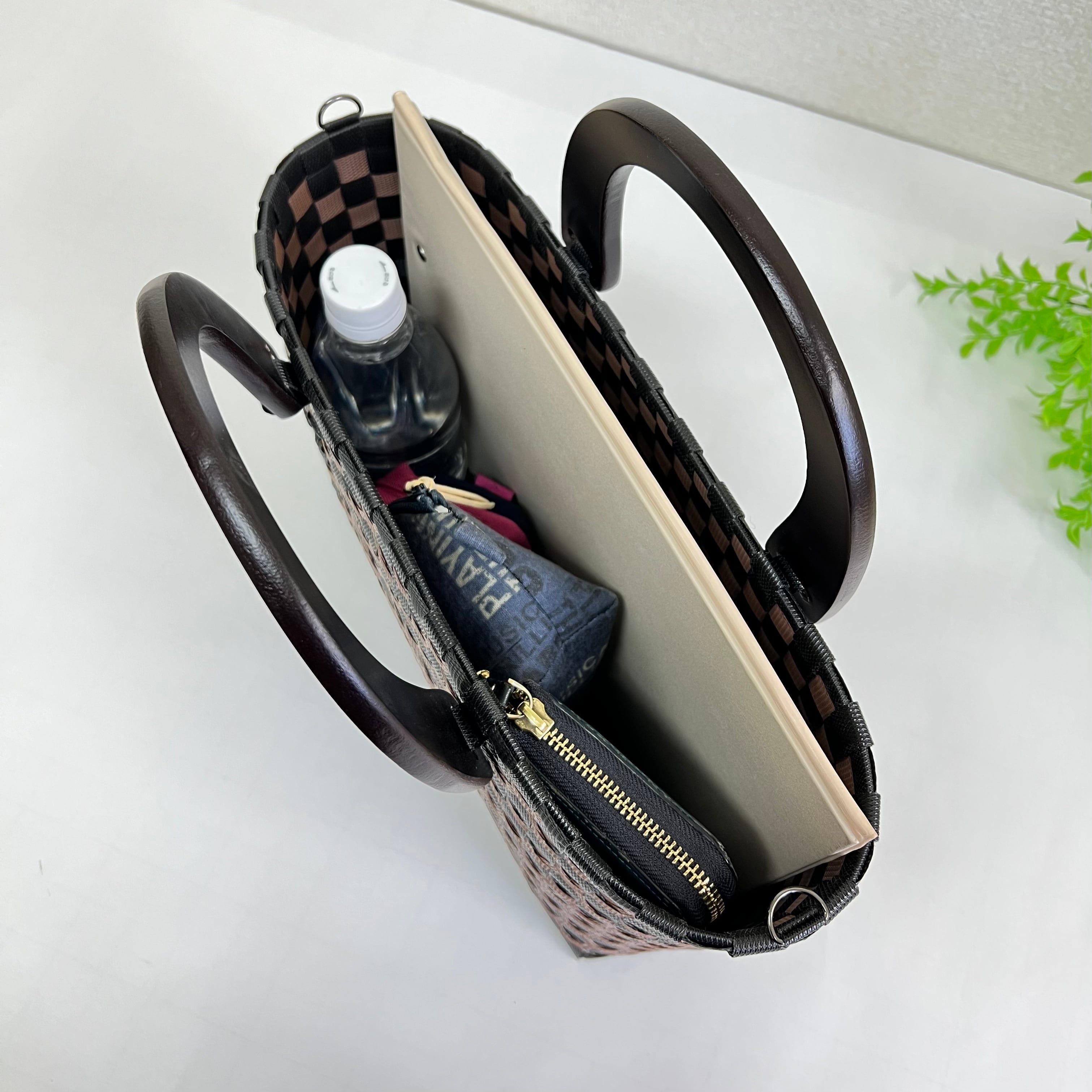 【受注製作】プラカゴ Mサイズ/A4 M-450 黒*こげ茶 2way ウッドハンドル プラカゴバッグ 雨の日バッグ