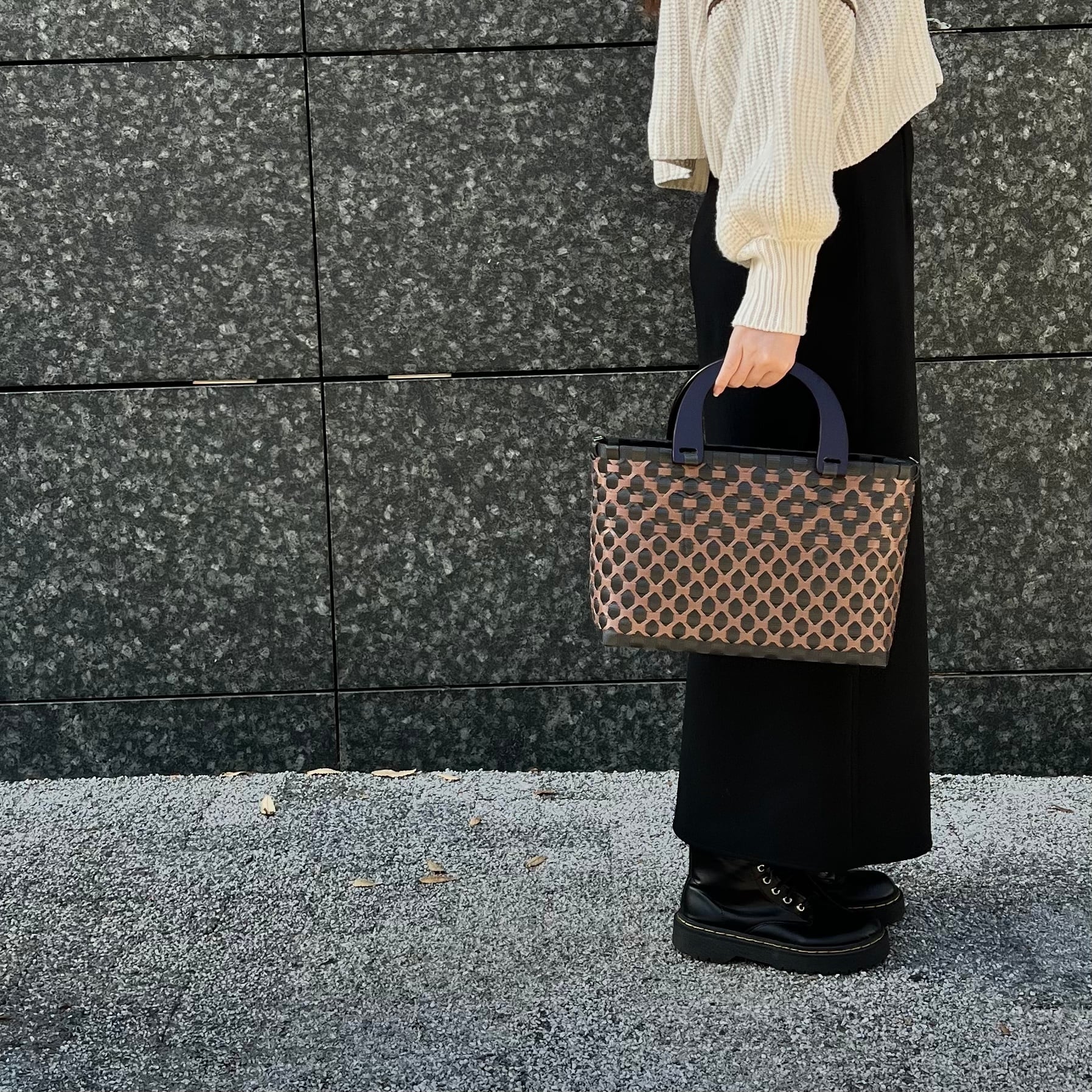 日本製梱包用PPバンドで編み上げたプラカゴバッグです。